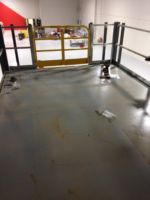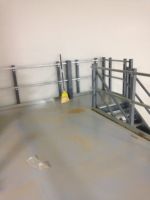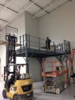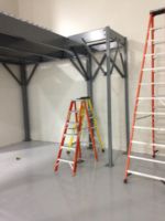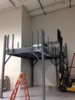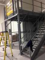 Flint Group had a design in mind when they approached Mezzanine Distributors. They were looking for a qualified, trustworthy vendor to manage the process for them and provide them what they were looking for. By utilizing a mezzanine against an existing wall and surrounding the underneath area of the mezzanine with wire partition, they were able to solve both problems. The mezzanine was roughly 250 square feet and included a straight staircase, handrail, a swing gate for pallet access, and resin board flooring. Wire partition was included to surround the bottom portion of the mezzanine and included a swing door for access.