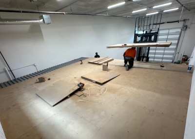 Additional customization includes a floating steel staircase with wood treads, cable railing, and a stained wood top rail, as well as a four-vehicle car lift — delivering a highly tailored solution to fit the client’s exact layout and needs.